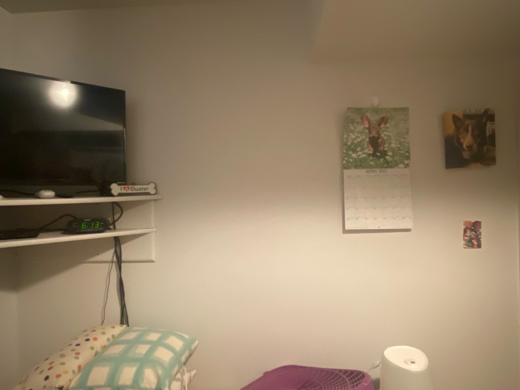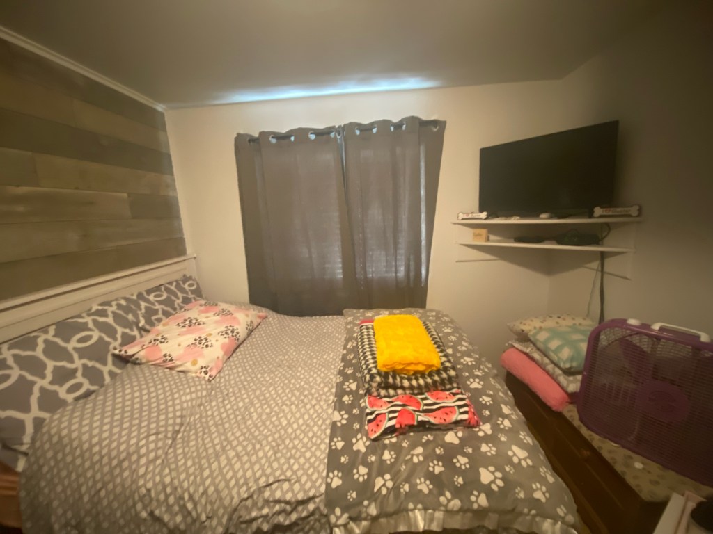 Keisha has been a family friend for years. She is such a wonderful person and I was very happy to give her some ideas to spruce up her bedroom. She already had a lot of gray and white and recently added the wood plank wall behind her bed. She also loves her dog and plans to hang a large picture of him up somewhere in her room. She doesn’t have a lot of space but needed a little inspiration for how to finish the room. Here are the before pictures: