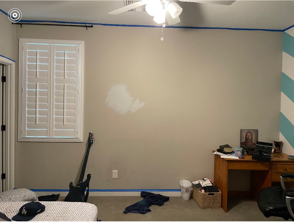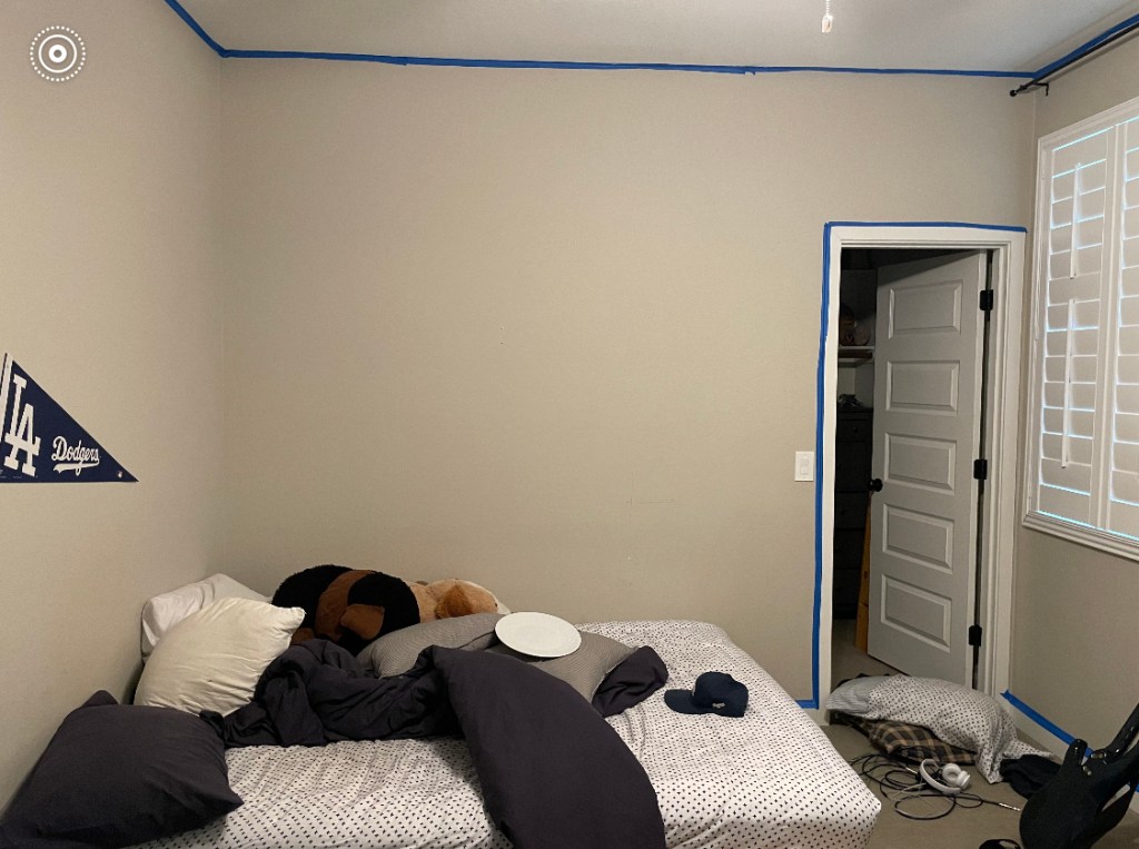My friend Jeni asked if I could come up with a design for her teenage son’s bedroom. Some of his interests include baseball (specifically a Dodger’s fan), fishing, music and reading. He also knew that he wanted a light gray blue color on the walls. Here are the before pictures:
