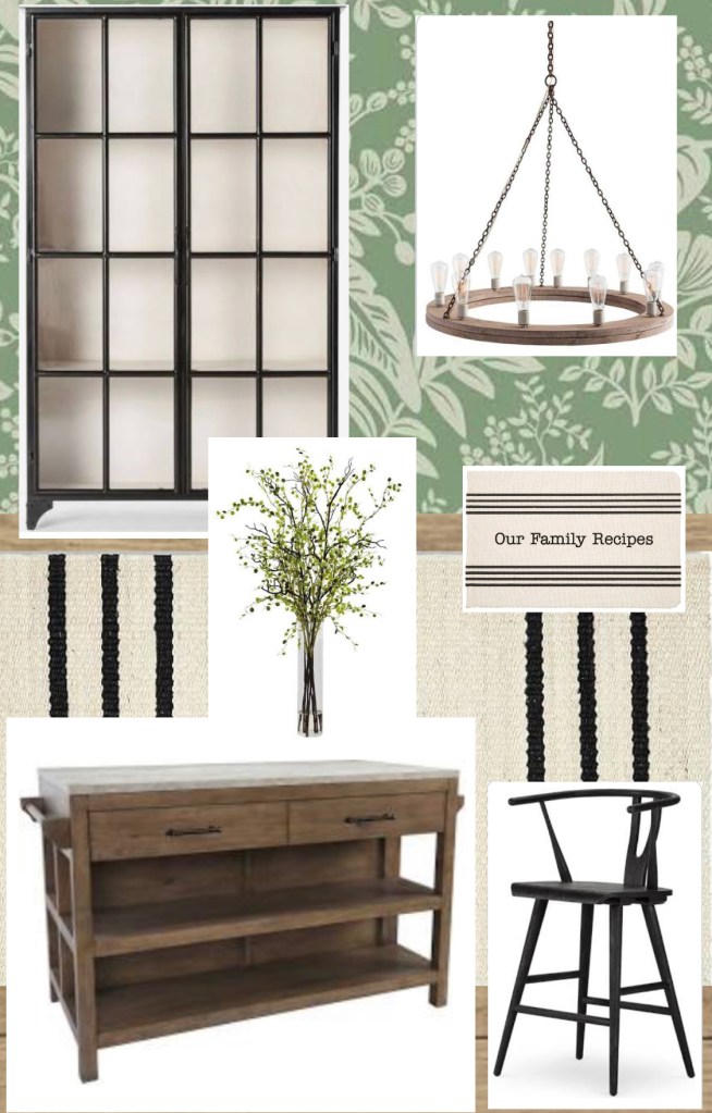 Canopy Kitchen Rifle Paper Co Canopy Wallpaper: http://coopersrow.comMohawk Laminate Flooring: http://refalfloors.comDanton Stripe Natural Fiber Rug: http://potterybarn.comTanner Brown and Gray Kitchen Island: http://colemanfurniture.comNight Willow Arrangement: http://nearlynatural.comMarjorie Curio Cabinet: http://luluandgeorgia.comLivingston Stool: http://magnoliamarket.comArteriors Geoffrey Light Chandelier: http://getlighting.comOur Family Recipe Book: http://mudpie.com Share this: Share on X (Opens in new window) X More Share on Facebook (Opens in new window) Facebook Share on Pinterest (Opens in new window) Pinterest Like Loading...