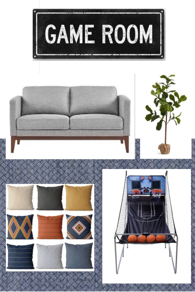 Game Room SAFAVIEH Rug: http://overstock.comSaturnpower Shot: http://amazon.comCarson Carrington Mid Century Linen Loveseat: http://overstock.comGame Room Sign: http://etsy.comNavy Pillow Covers: http://etsy.comFaux Potted Fiddle Leaf Tree: http://potterybarn.com Share this: Share on X (Opens in new window) X More Share on Facebook (Opens in new window) Facebook Share on Pinterest (Opens in new window) Pinterest Like Loading...